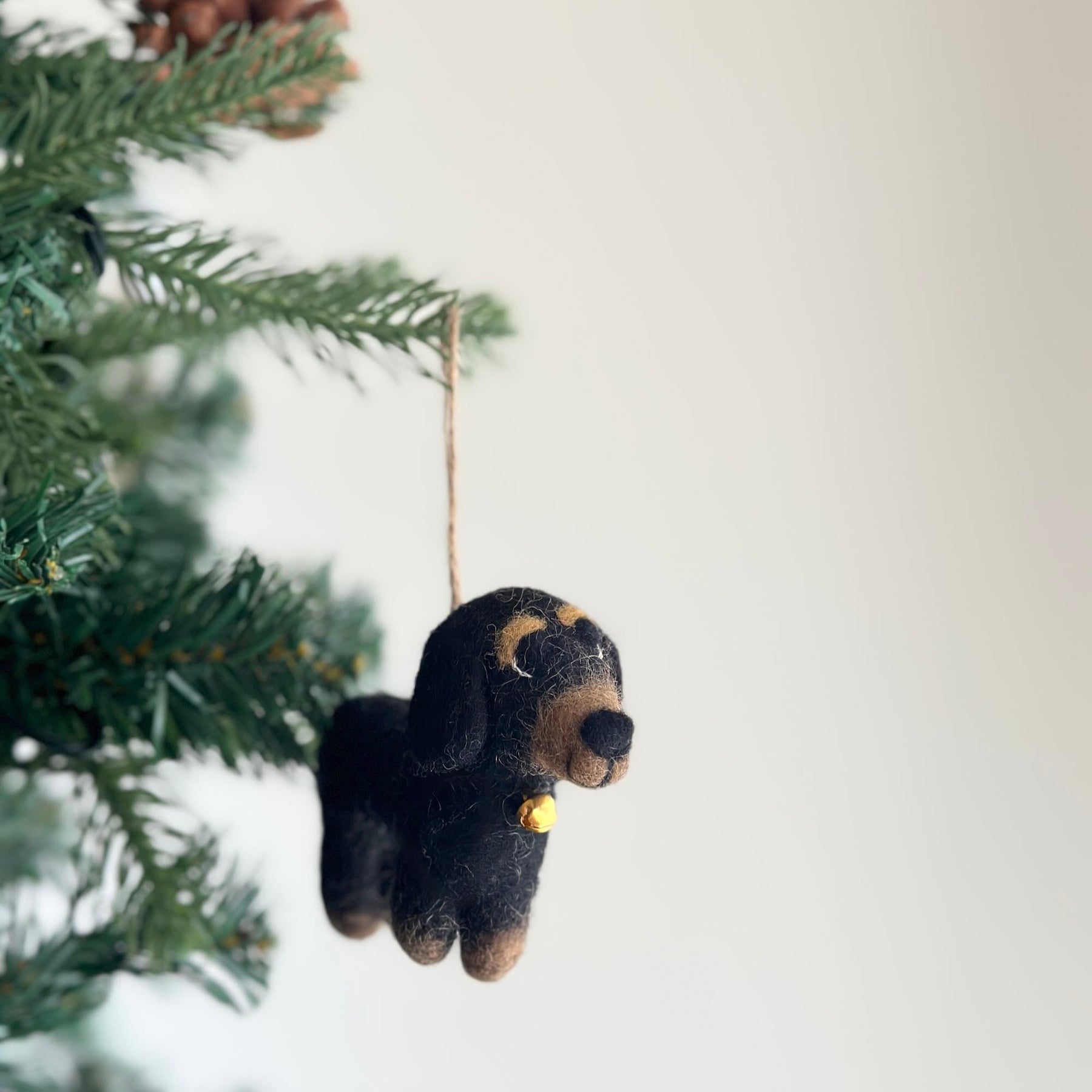 Add a burst of puppy charm to your space with our Felt Dachshunds Ornament! Crafted with four adorable Dachshunds in cream, khaki, brown, and black, it celebrates the furry friend in vibrant colors. A playful felt bone at the center adds whimsy. Set on a white felt frame, it's a must-have for dog lovers, transforming any room into a joyful haven of canine cuteness. 🐾🎈