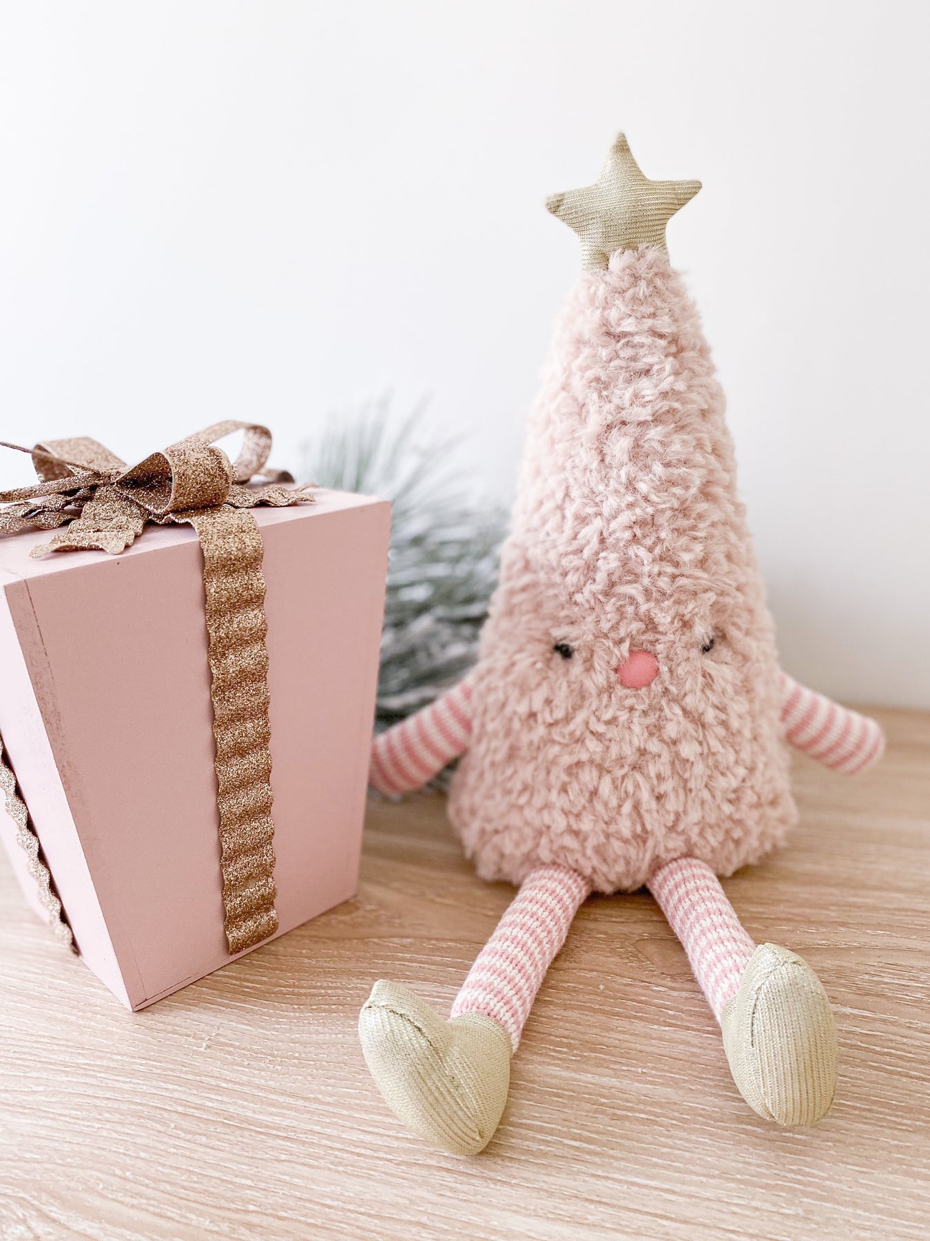 What's better than a Christmas tree? Mon Ami's Joyful Pink Tree Plush Toy. Playfully designed with pink-and-white striped arms and legs, a gold star and cute button nose, this Christmas plush toy is packed with personality. And destined to be a festive favorite. Featuring a generous 15-inch length and cuddle-ready body, our charming Christmas plush toy is sure to be a constant companion around the holidays.