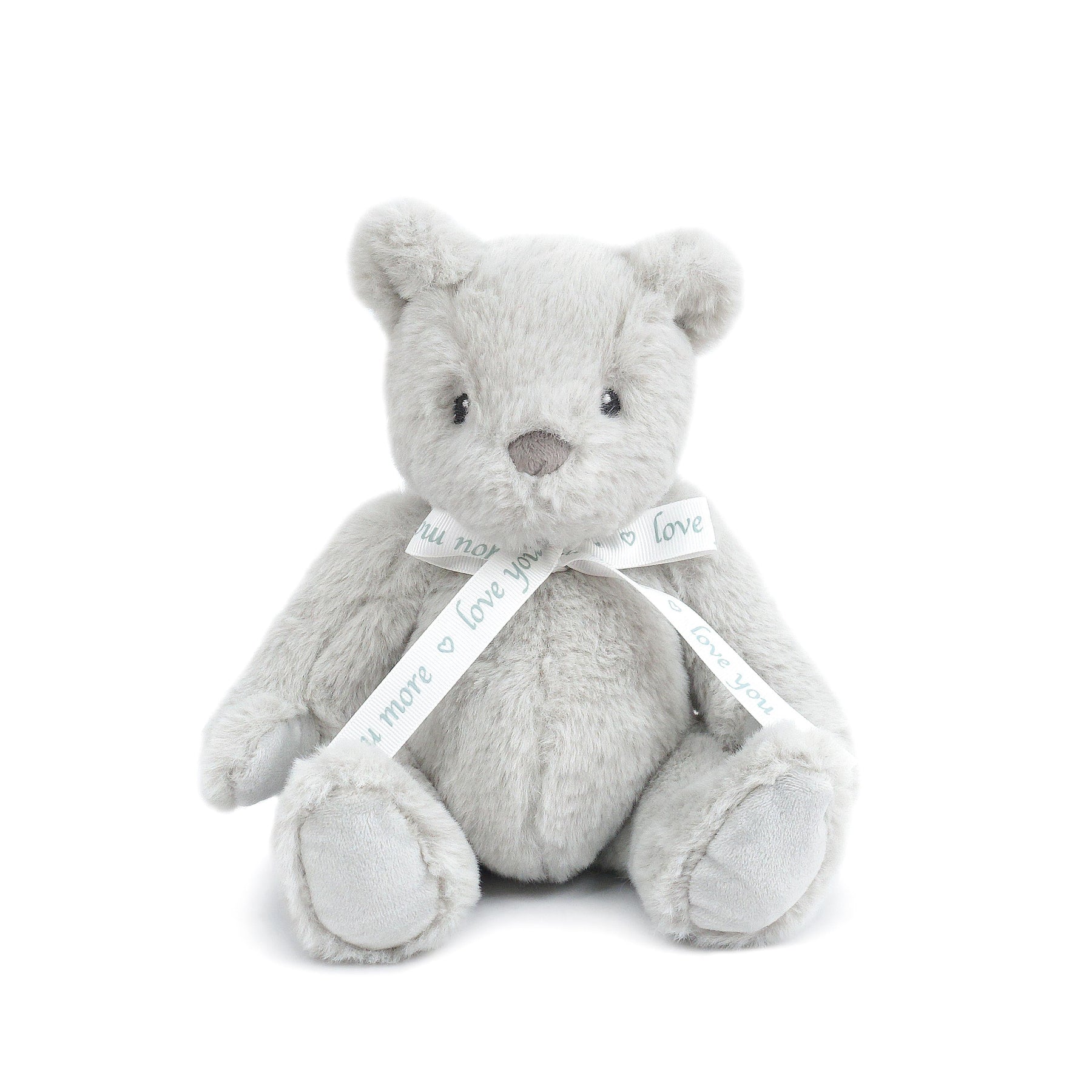 MON AMI's heirloom Love U Bear says it all. "Love You More" is inscribed on a satin ribbon bow as an endearing sentiment! Love You Bear comes in cream, gray or pink in our signature lux plush with an adorable embroidered face. So sweet and cuddly, Love You Bear is ready to snuggle, hug and love!