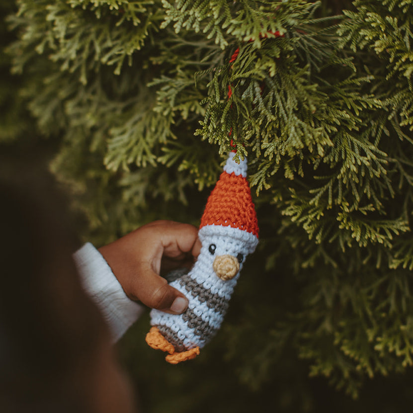 Look who flew in from the coast and is ready to add a splash of color to baby's First Christmas tree! This handmade seagull ornament is crocheted with organic cotton yarn and is perfect for tiny hands.