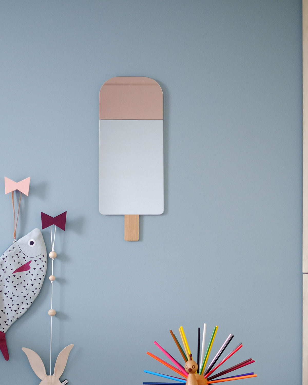 EO's Ice Cream mirror is a playful and decorative wall piece. The slim dimensions make it easy to place in almost any room, to add personality, and humor to any room.