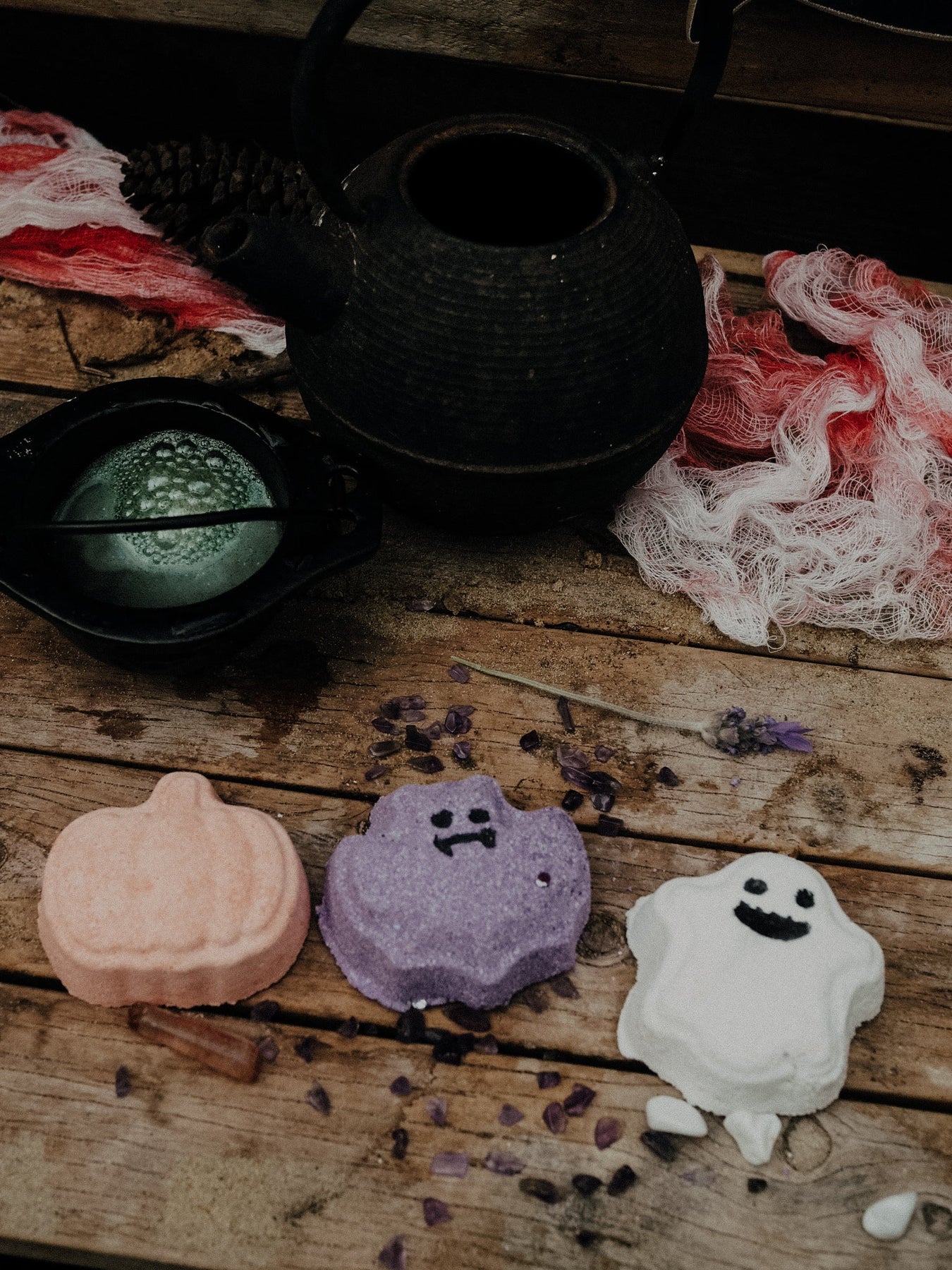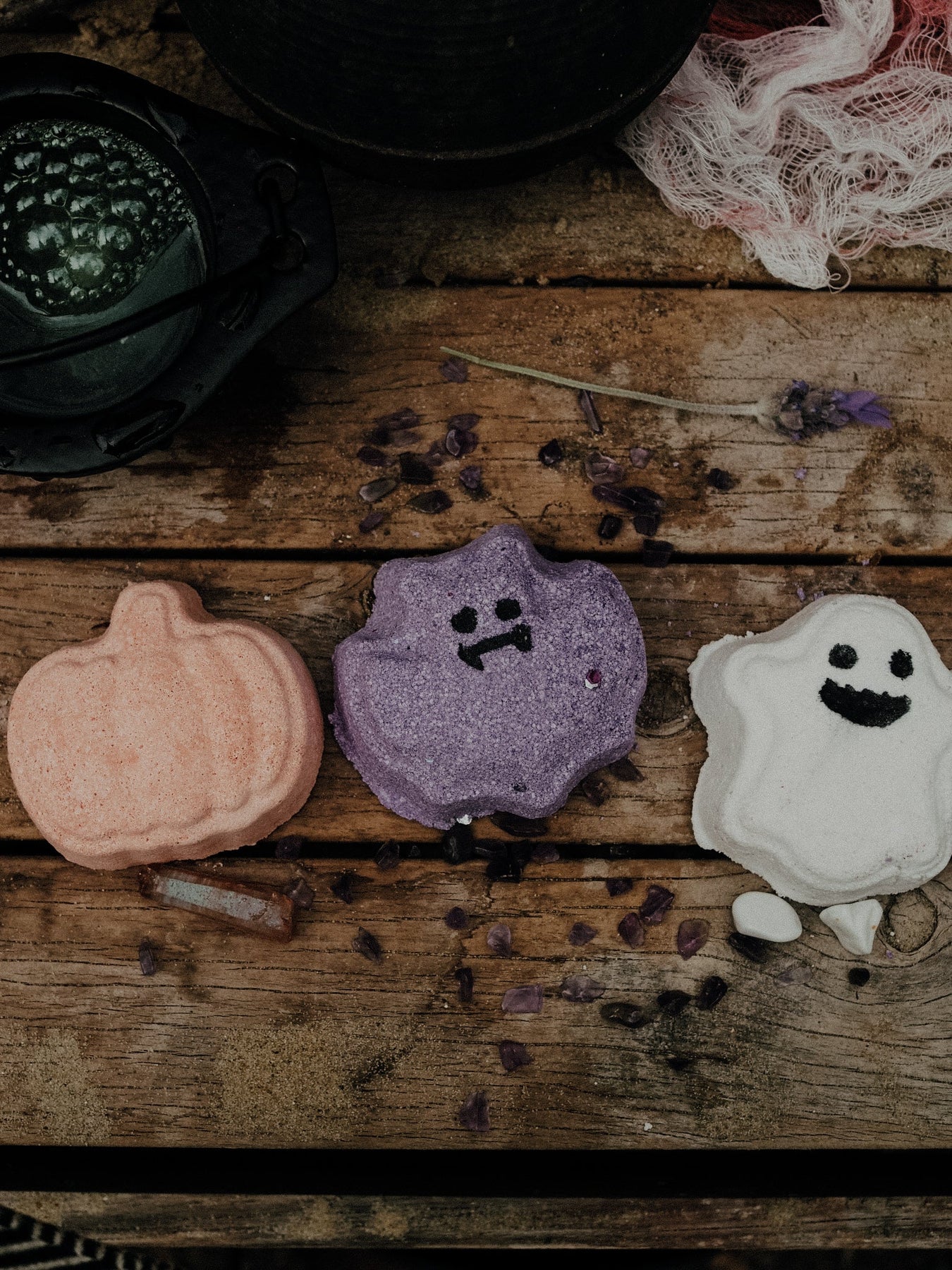 Each set includes a Pumpkin, Bat, and Ghost PlayFizz, each filled with different crystals -