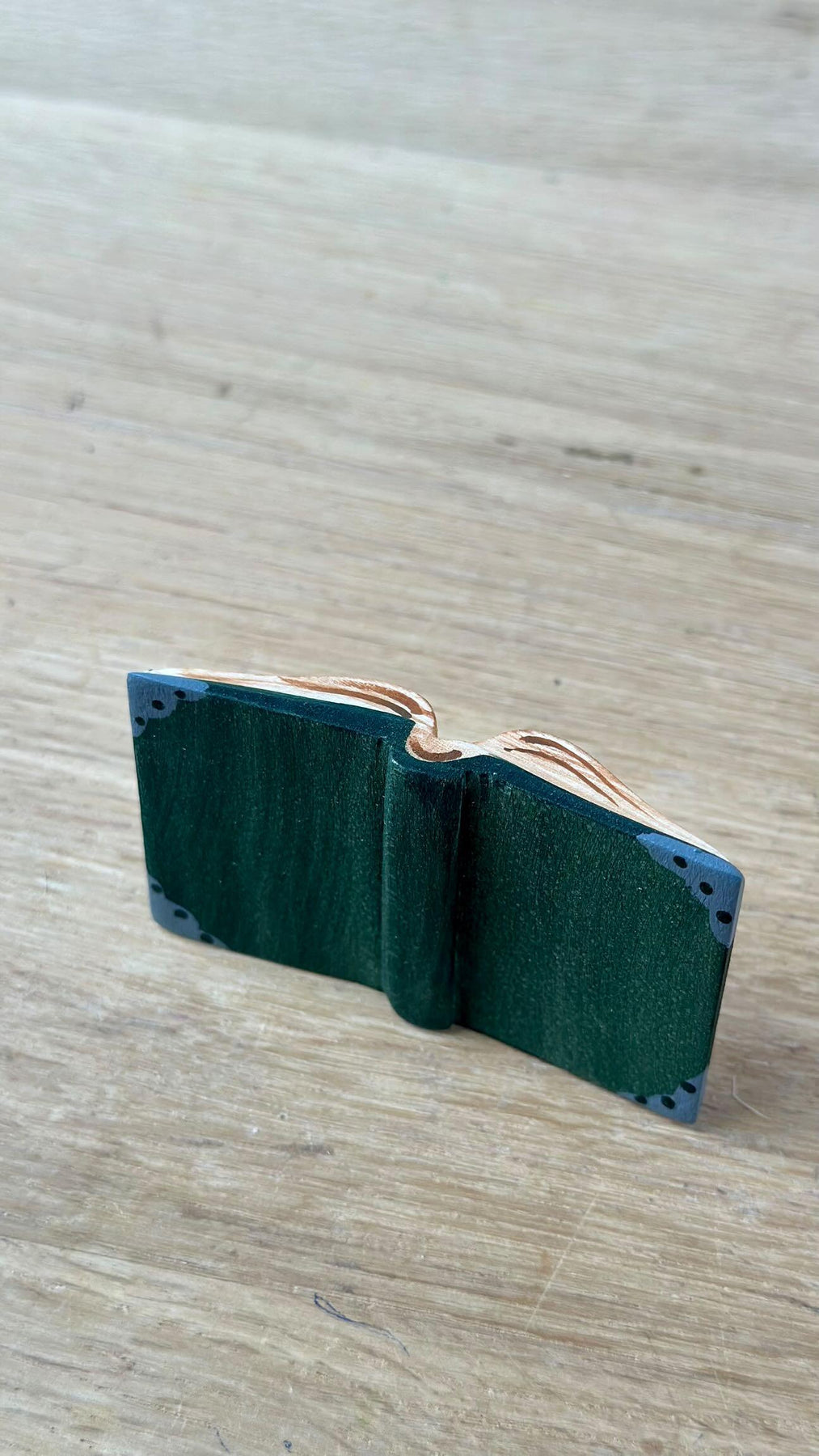 Carved from sustainably sourced wood and finished with non-toxic, water-based dyes, this spellbook is safe for young children and eco-friendly.