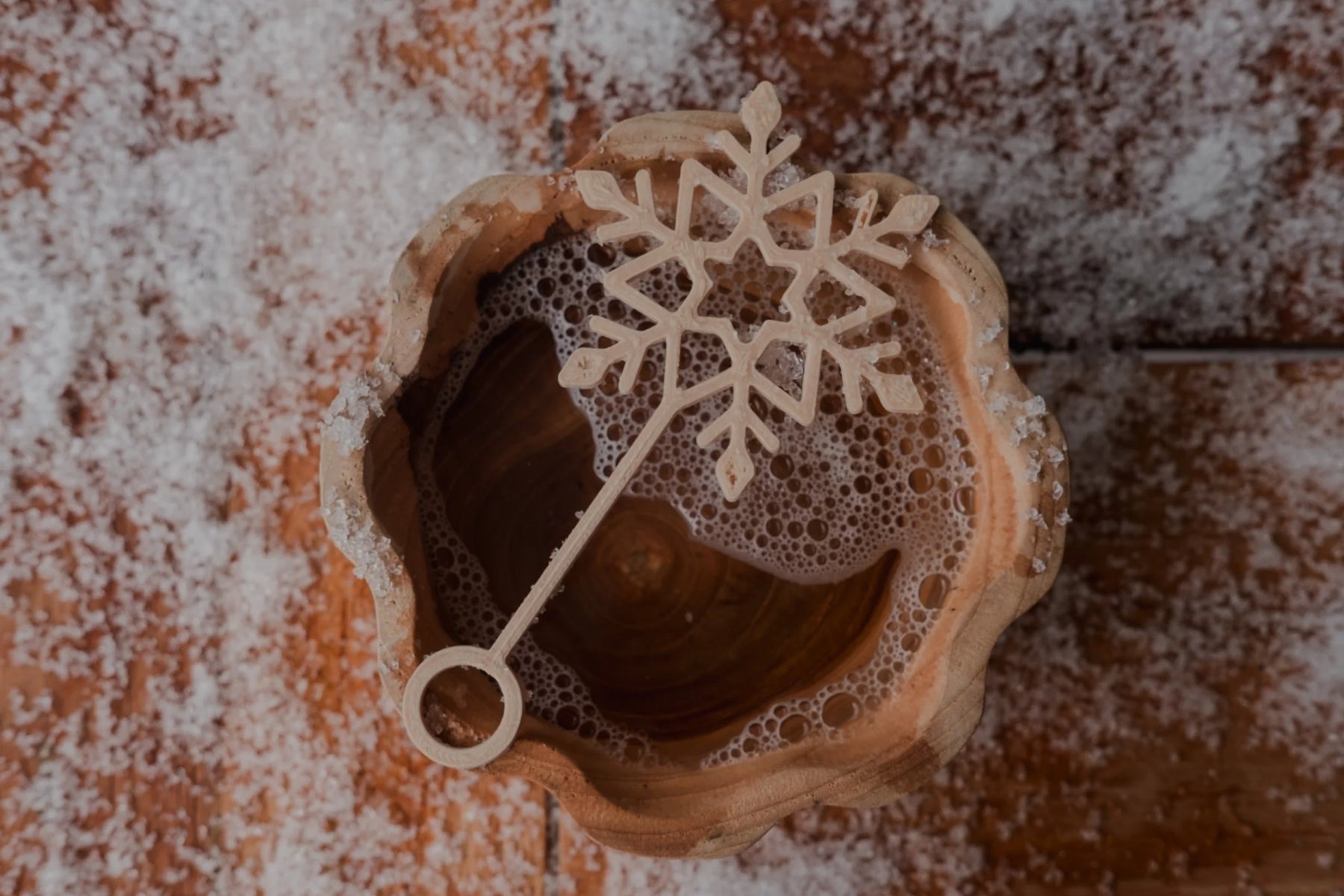 A magical snowflake-shaped bubble wand designed for calming sensory play. Perfect for winter-themed play, party favours, and supporting fine and oral motor development.