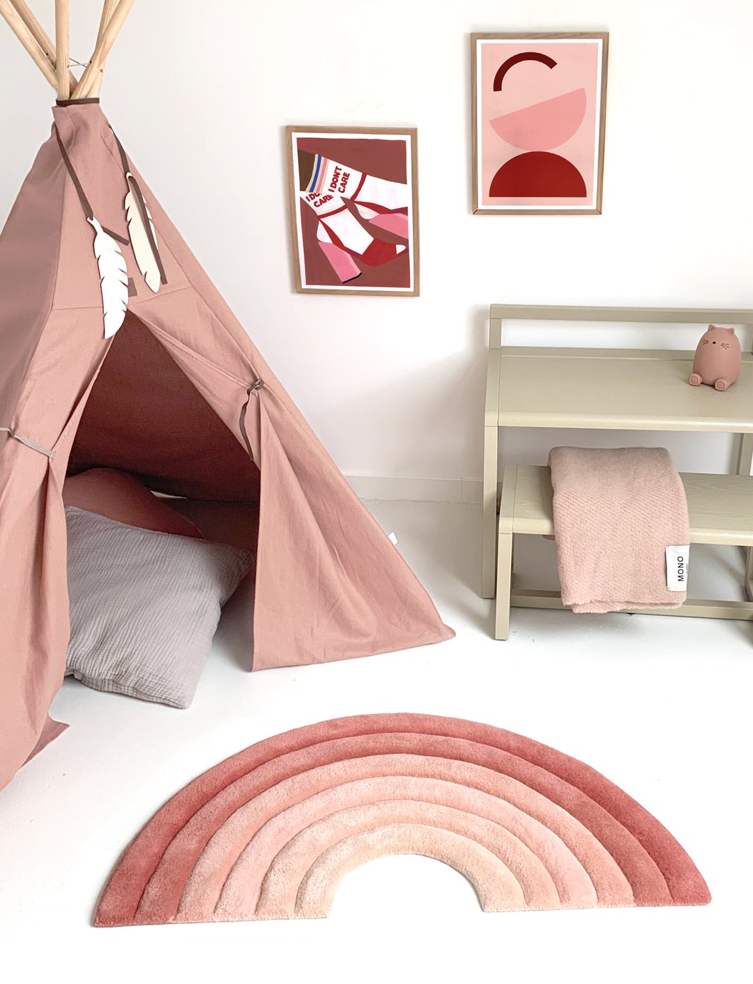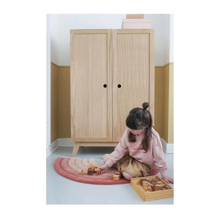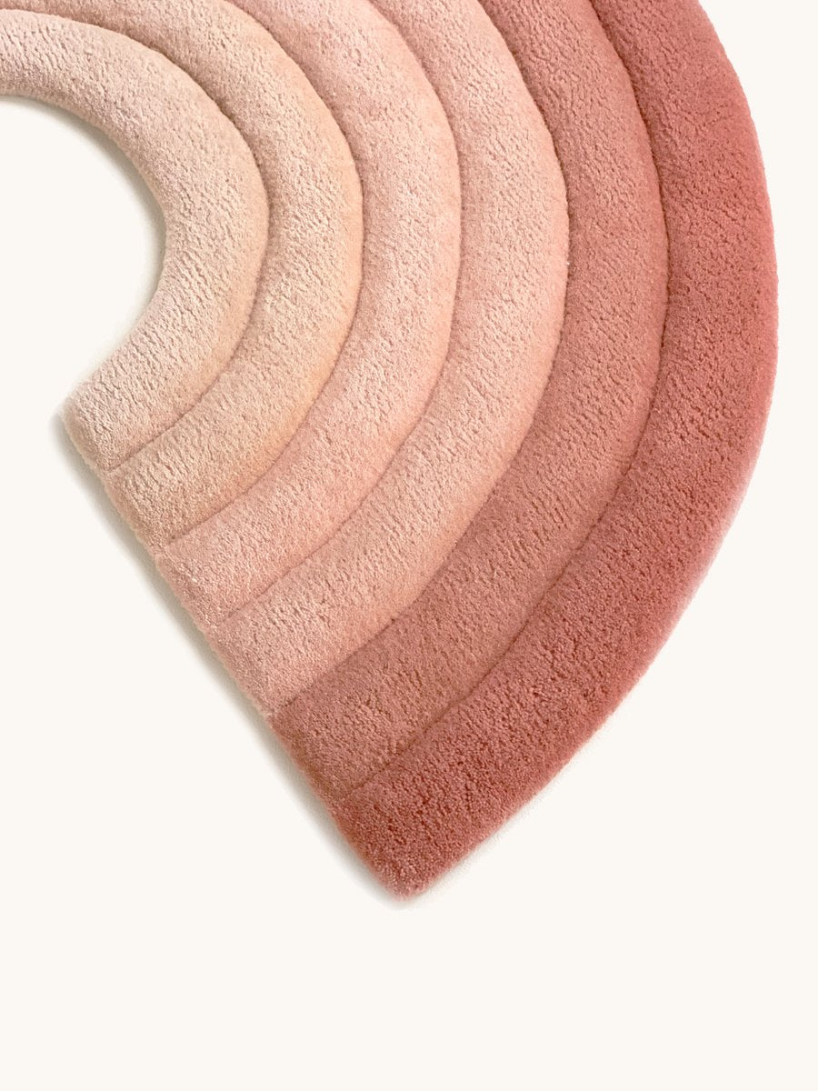 Decorate your children's room with the 3D textured Rainbow Rug made of 100% New Zealand wool in a natural color. Each rainbow stroke is roundly cut and hand-carved to create a bubbly embossement. Kids love to touch it as it adds a sensory and fun element to the rug. A real treat for their feet.