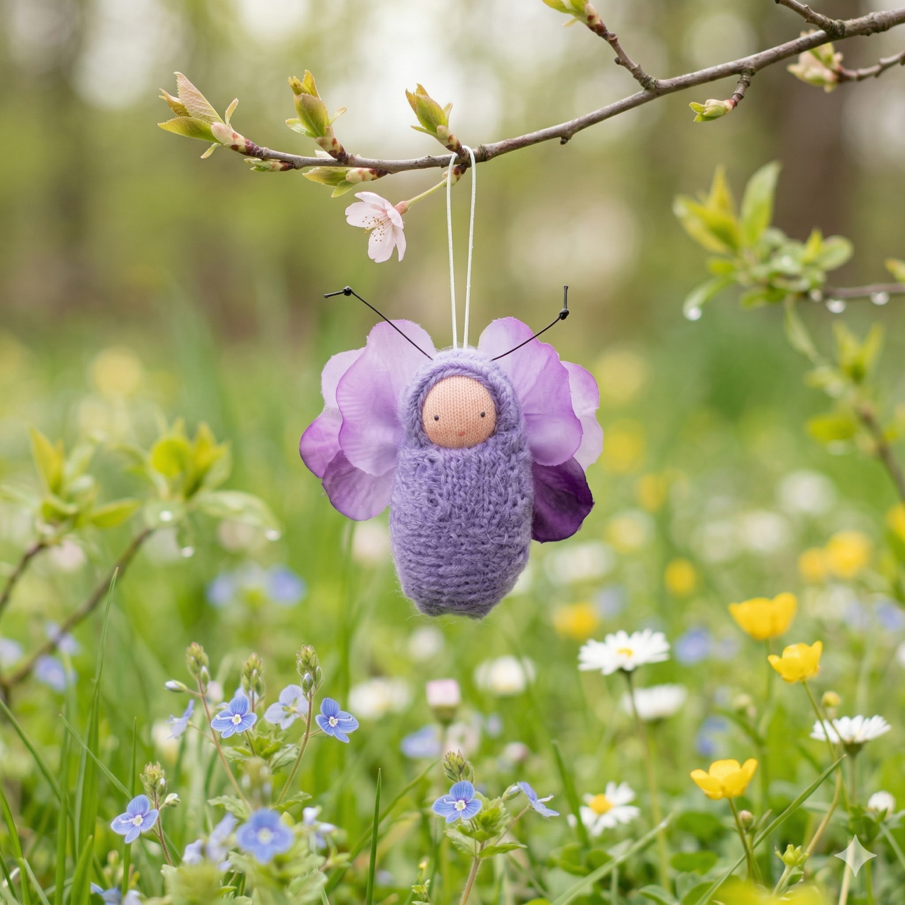 - Listing is for 1 baby purple fairy ornament with peach skin tone; color may vary slightly due to availability of materials