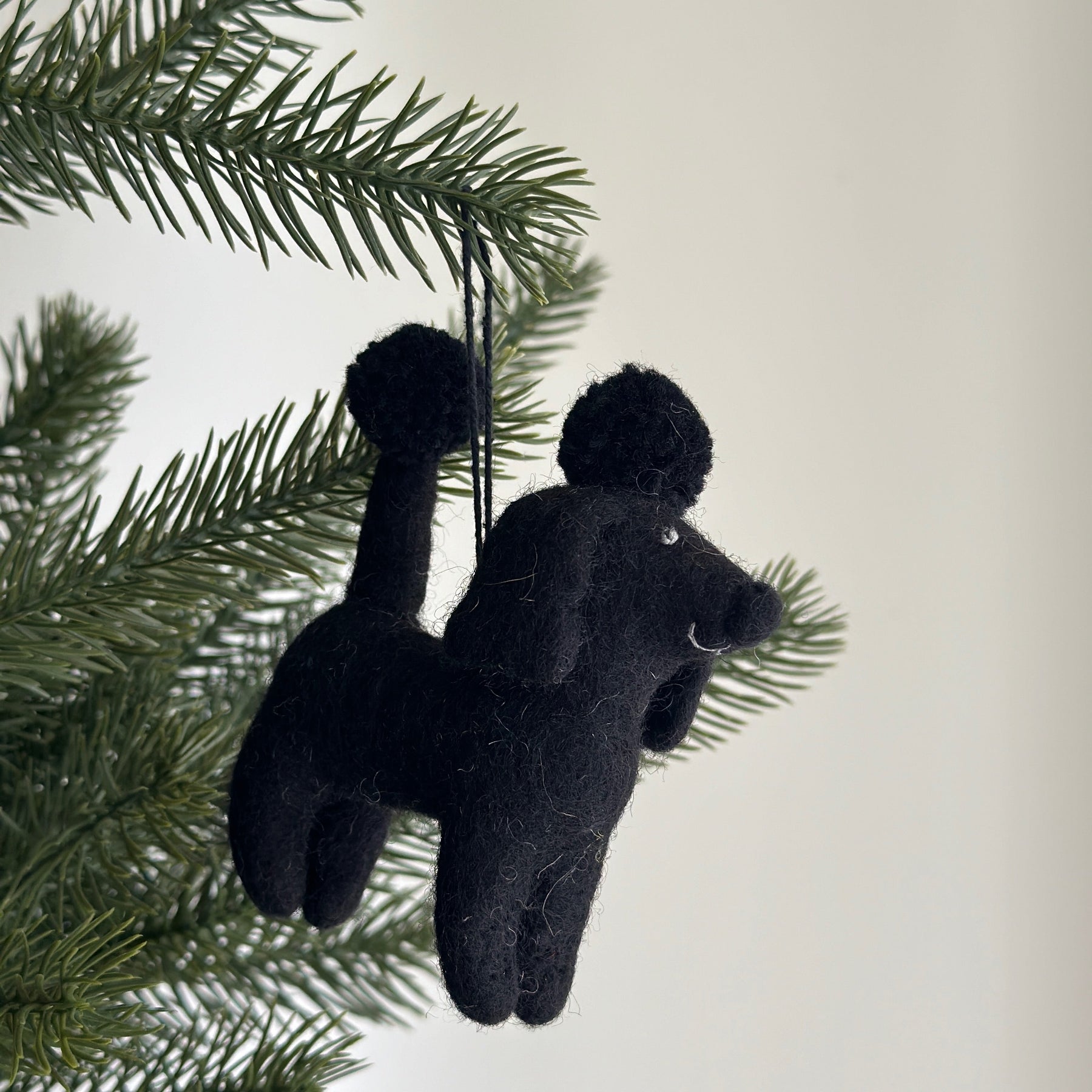 Elevate your holiday decor with Wool Felt Poodle Ornaments by Ganapati Crafts Co. Handmade in Nepal, these elegant poodle ornaments, available in White, Cream, and Brown, exude charm. Adorned with pearl necklaces, they embody eco-friendliness and fair trade. Your purchase empowers women, supports education, and improves living conditions.