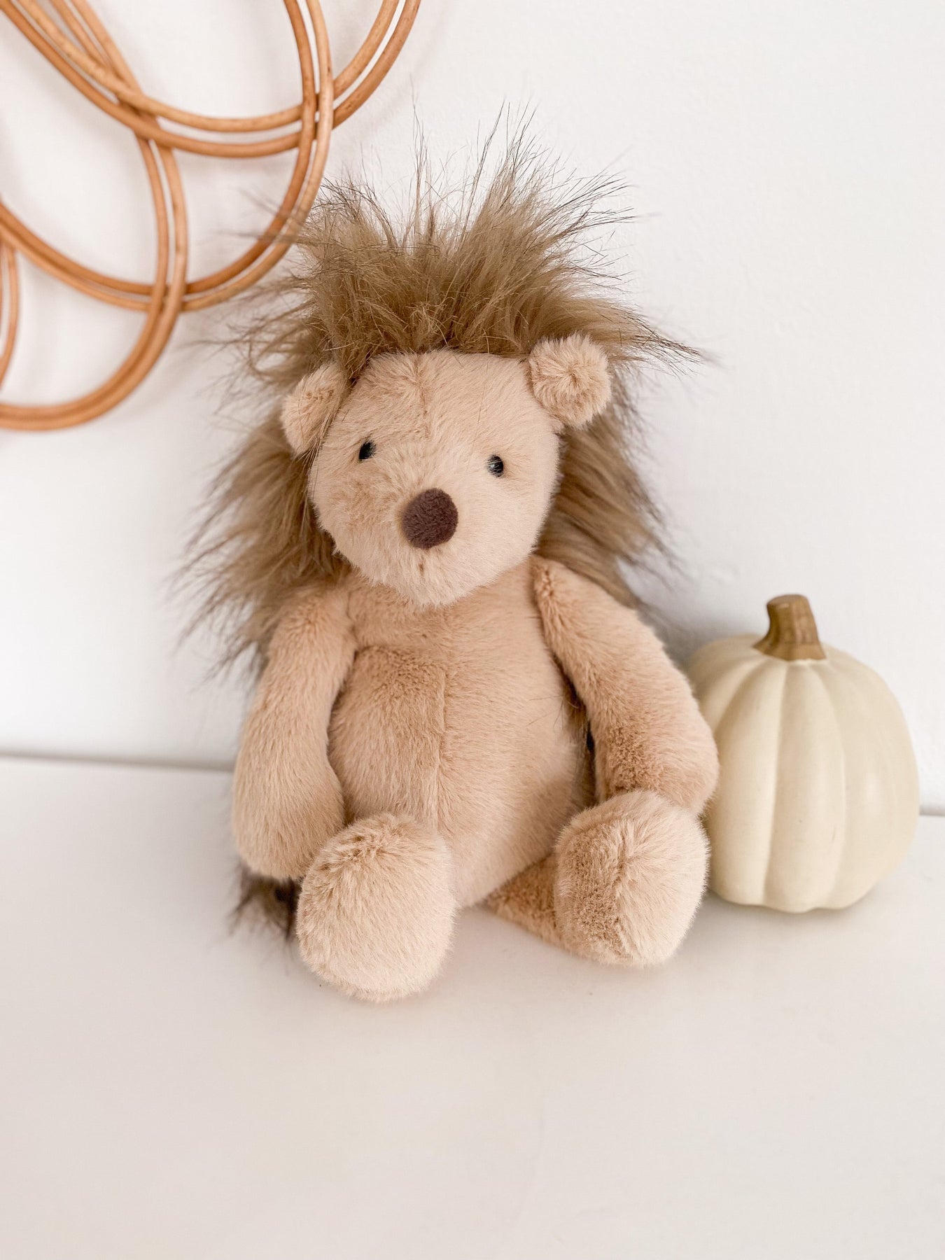 This adorable hedgehog plush toy is ready for autumn fun. Super soft and ready to cuddle, our one-of-a-kind hedgehog plush toy is ideal for the stuffed animal lover who needs something extra-special in their collection.