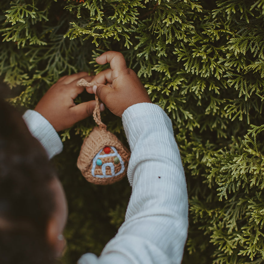 Reminiscent of holidays at Grandma's house, this Gingerbread House ornament is perfect for Baby's 1st Christmas. Pebble ornaments are handmade with soft cotton yarn and stitched carefully with love. Designed with baby's safety in mind, these ornaments are non-toxic and soft, with no removable parts. As always, Pebble Toys are Fair Trade, Eco-friendly and sustainable.