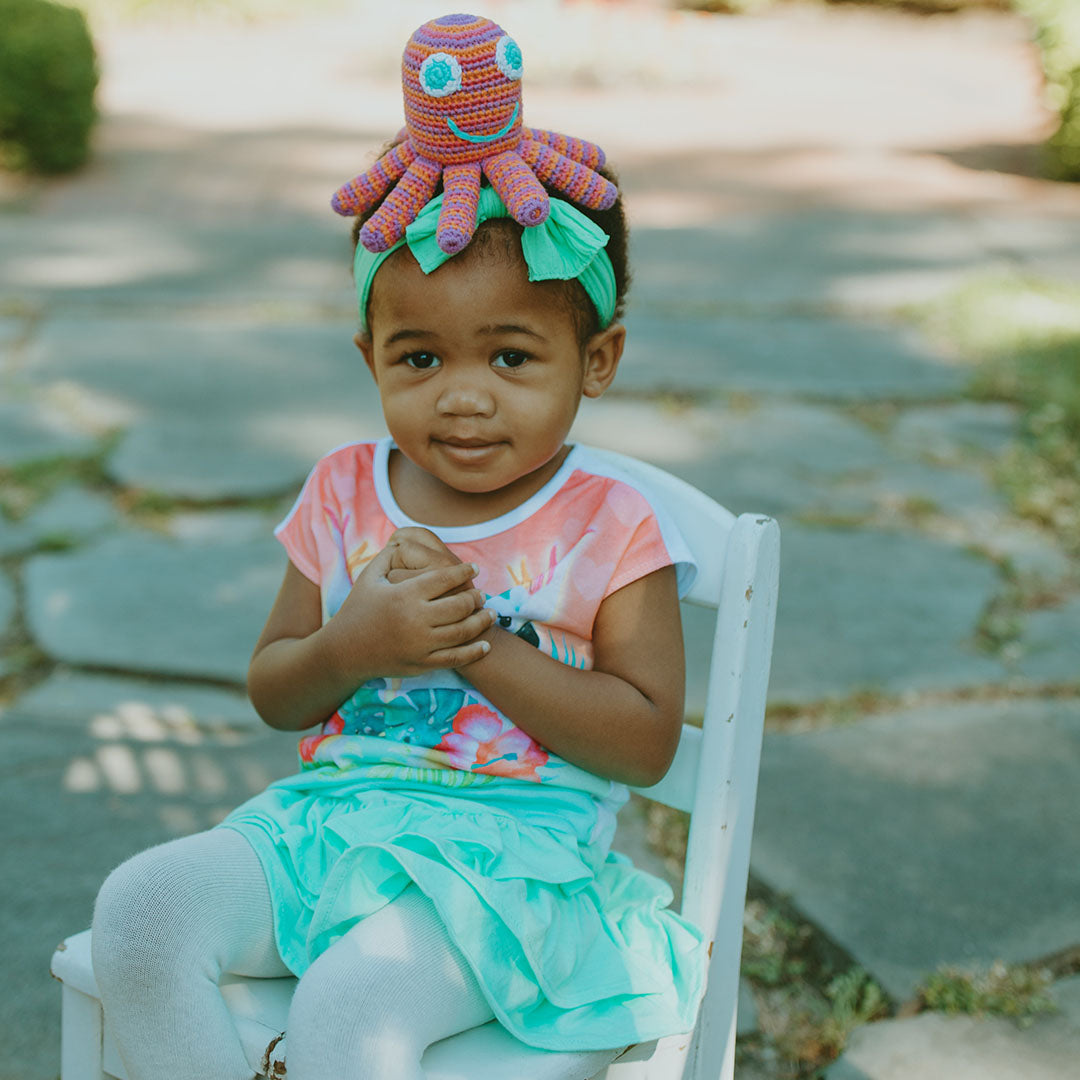 This happy little sea creature is a little hands' favorite! Our octopus rattle is colorful and full of personality. Handmade with lightweight cotton yarn, its soft rattle when shaken is sure to bring endless laughter and joy to your little one.