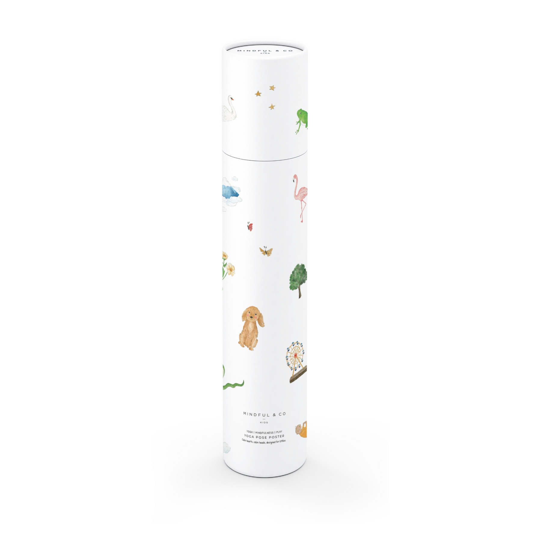 Our beautifully hand-illustrated yoga educational print features 26 fun, easy to follow illustrated yoga poses that can be displayed at home, or in a classroom.
