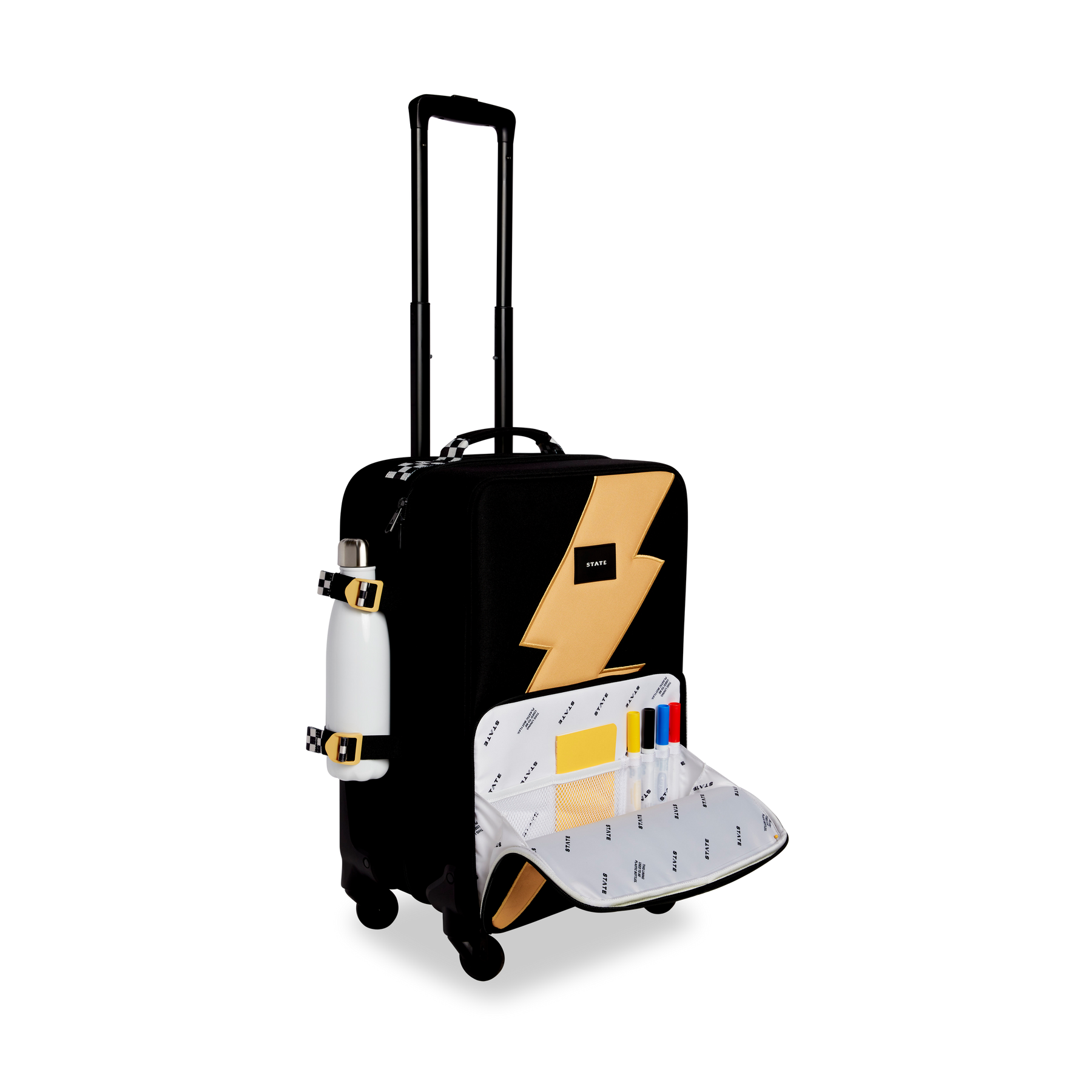 Keep travel fun for your kid and functional for you. Our Logan Carry-On features smooth, 360° spinner wheels, a kid-friendly adjustable handle, and thoughtful functionality designed to keep everything in place—plus a bold, stand-out design that is just as unique as your kid.