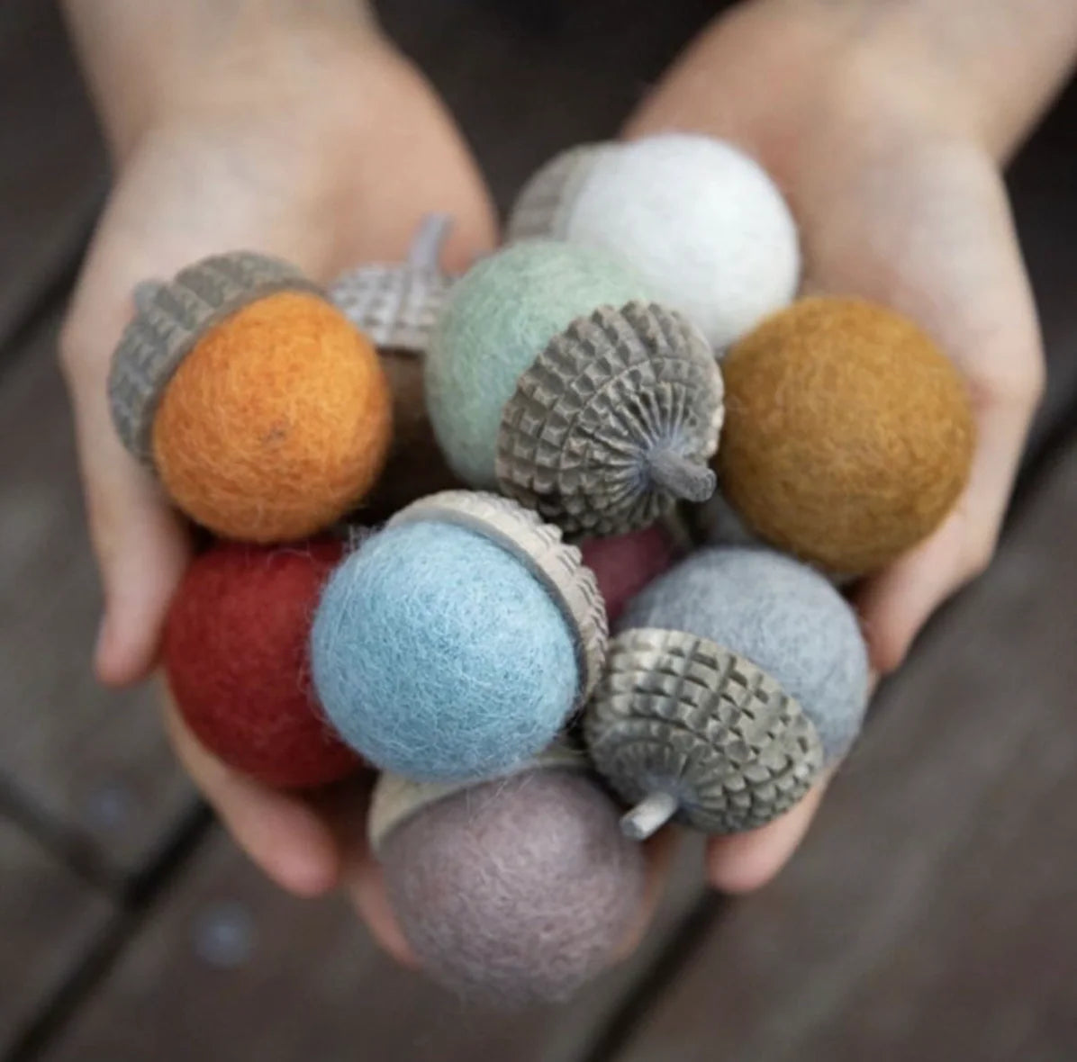 Bring the magic of nature into play with the Papoose Earth Acorns. These charming hand-felted wool acorns feature beautifully earthy tones, perfect for open-ended play, counting, sorting, or as a seasonal display piece.
