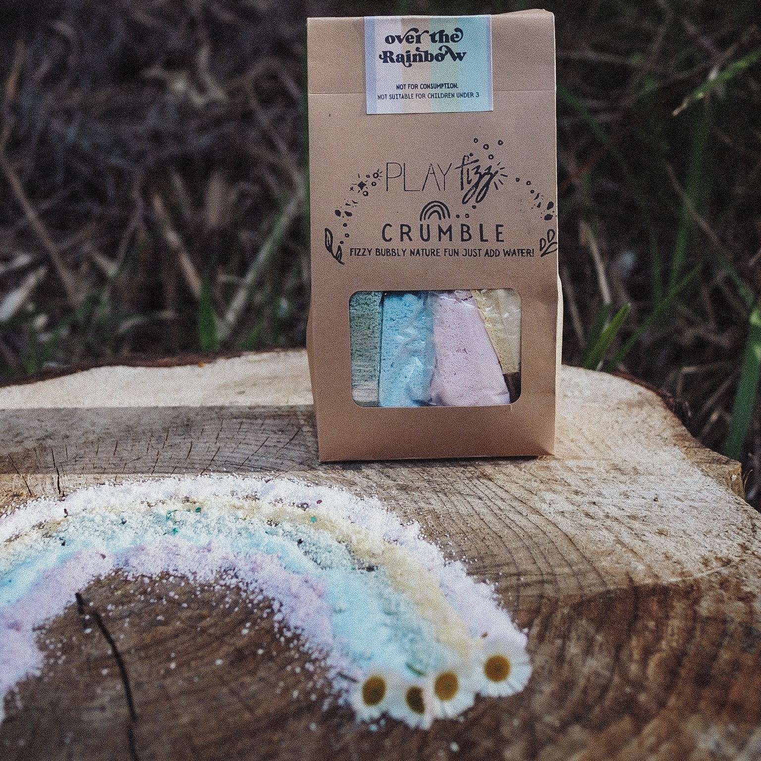 The crumble pack is just that. The original PlayFizz crumble in all 5 nature colors are separated into home compostable cellophane packets so that you can make your very own nature rainbow. All in a handy pack.