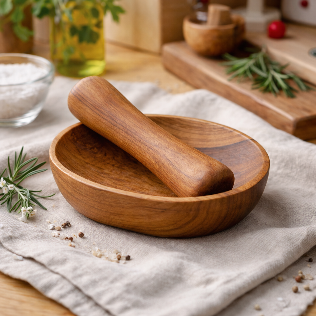 This listing is for one wooden dish and pestle set