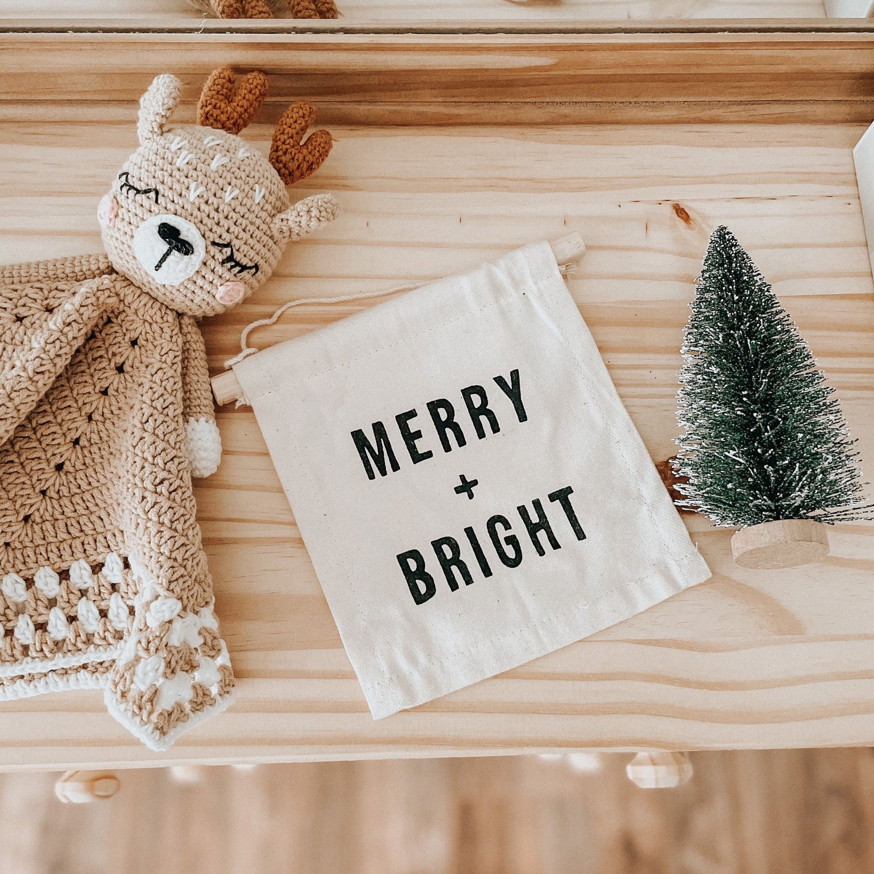 "Merry + Bright" Canvas Hang Sign | Christmas Wall Hang
