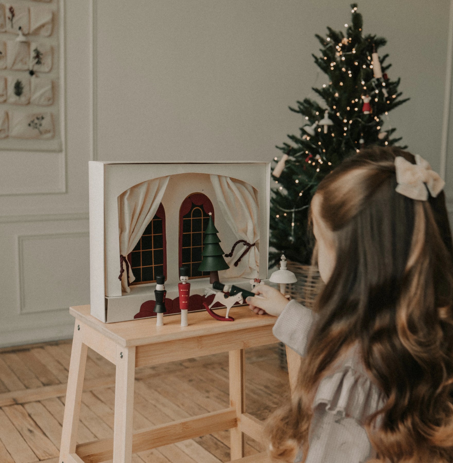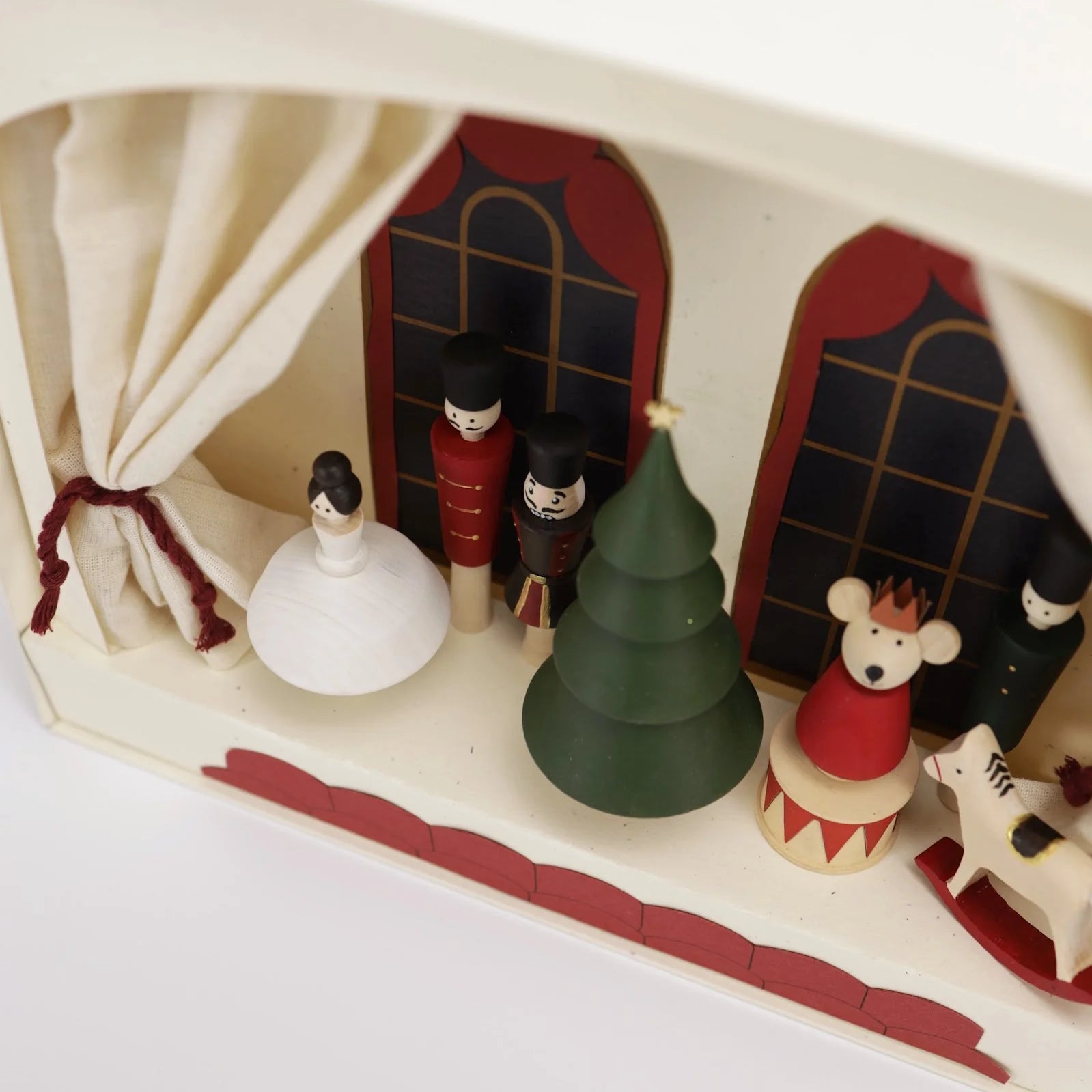 This special edition features a beautifully designed Theater Box that doubles as the stage. Children can open the curtains, arrange the figures, and set the scene for their own Nutcracker performance.