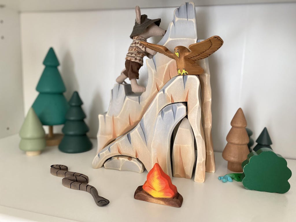 Embark on a rugged adventure with the Cliff, Eagle, Mountain Goat, Snake, and Lizard Set from Bumbu Toys. Each figure is carved from sustainably sourced wood and intricately hand-painted, highlighting the textures and hues of the wilderness. This set not only stimulates imaginative play but also serves as an educational tool, introducing the diverse wildlife found in mountainous ecosystems. Safe for kids and respectful of the environment, it's an ideal choice for conscious families.