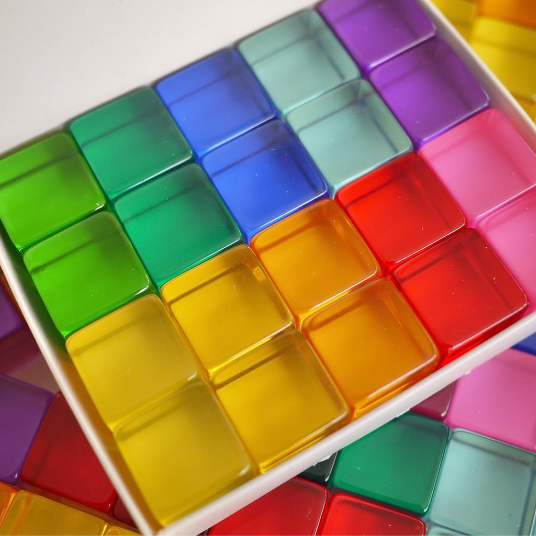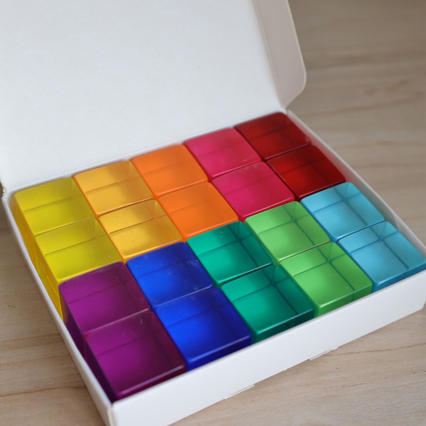- Sensory elegance. These cubes catch light, invite touch and curiosity, and bring a joyful glow to any play-space.
