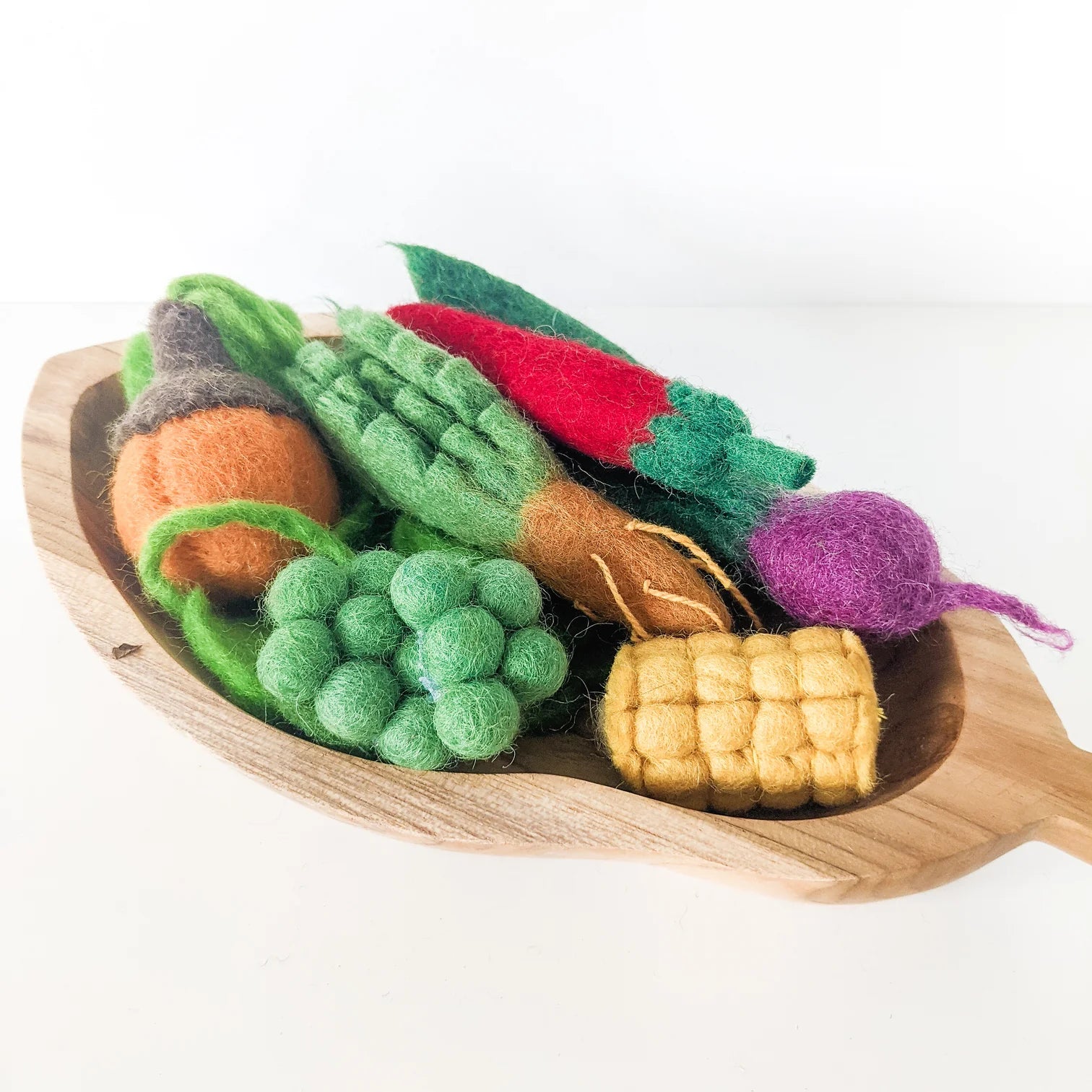 Bring the joy of farm-fresh food to playtime with our Mini Felt Vegetable Set (P/P301). Beautifully handcrafted and perfectly sized for little hands, this charming collection inspires hours of imaginative role play — from setting up a mini market stall to preparing pretend family feasts. With their rich colours and delightful detailing, these felt vegetables encourage creativity while gently introducing children to healthy food concepts through play.