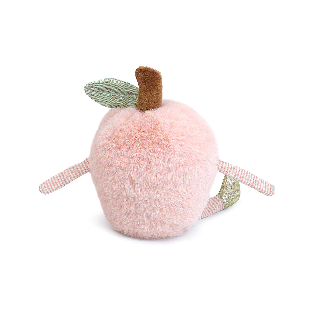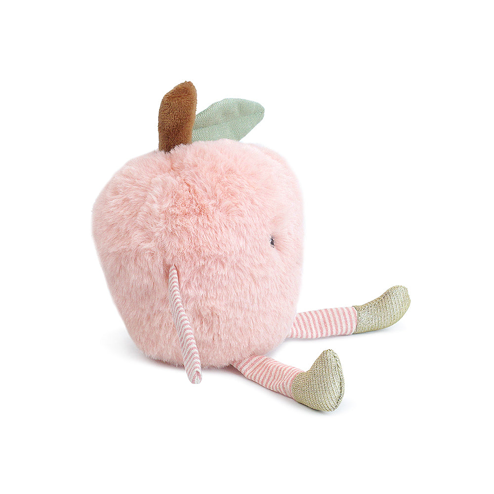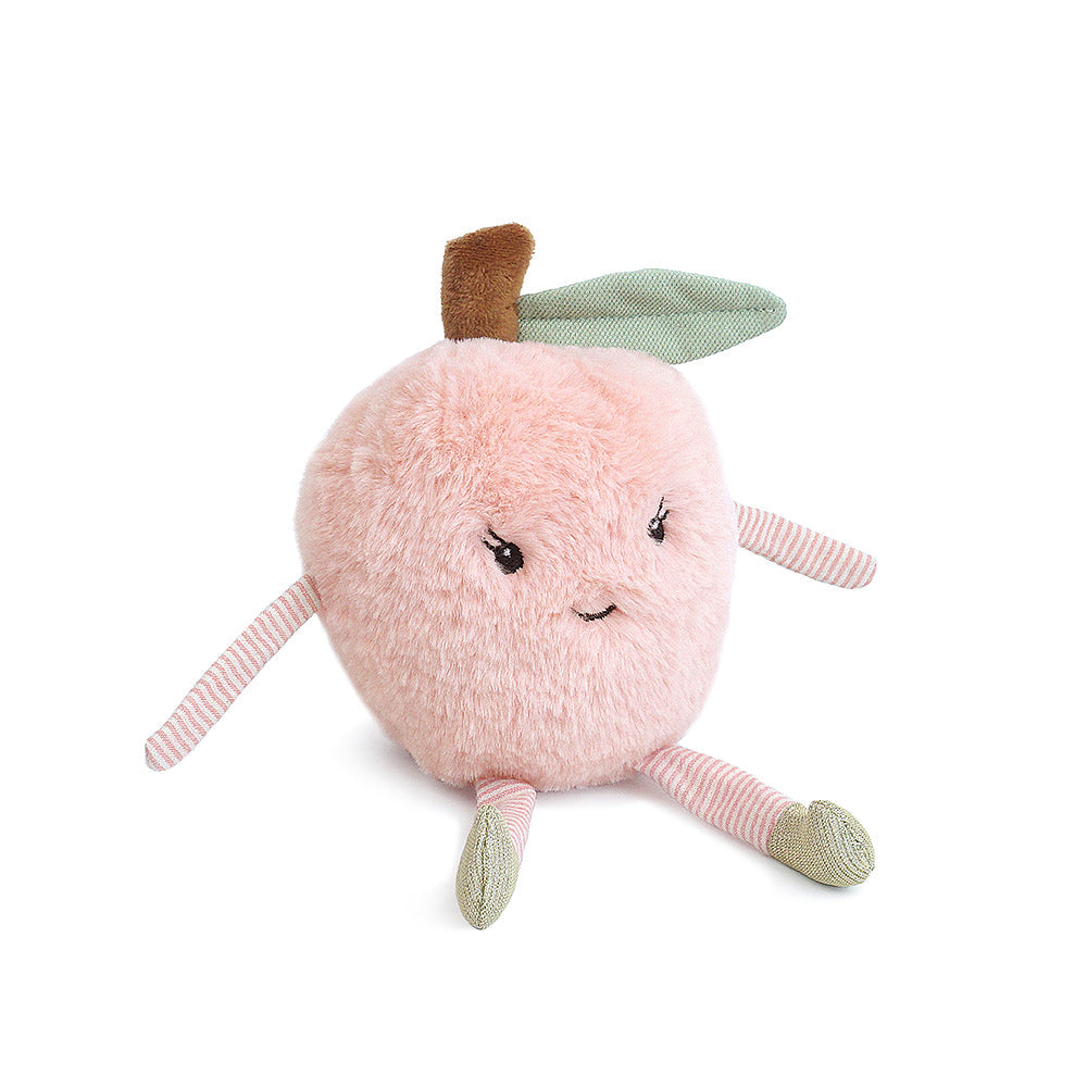 What a peach! Mon Ami's Peachie Plush Toy charms with her adorable embroidered face, playful striped arms and soft, squeezable body. Beautifully designed in soft pink with a chestnut stem and sage green leaf, our peach stuffed animal brightens any nursery or playroom. This unique peach plush toy adds a refreshing touch to a robust collection of dolls and stuffed animals. Encourage her to play with her fruit by gifting this precious peach stuffed animal.