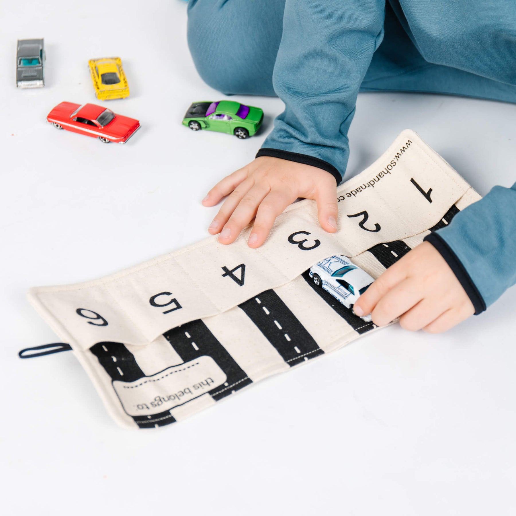 Never lose your child’s beloved toy cars again. With handy storage pockets for up to 6 toy cars, our best-selling toy car organizer storage bag doubles as a road-patterned play mat when open—perfect for quick and portable entertainment. Roll everything up into a compact bundle that fits in your bag when your kid’s done. Happy driving!